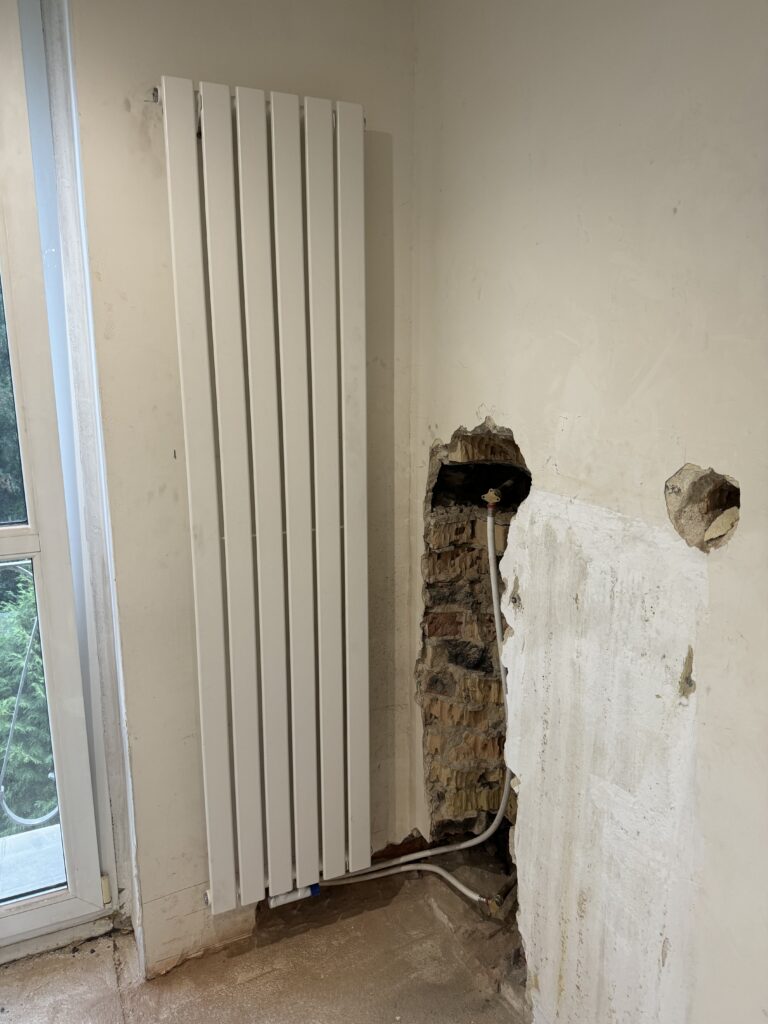 Wymiana grzejników w bloku z montażem spawanej instalacji C. O. w bruździe ściennej. Idealne rozwiązanie dla tych, którzy nie lubią widocznych rur w pokoju.