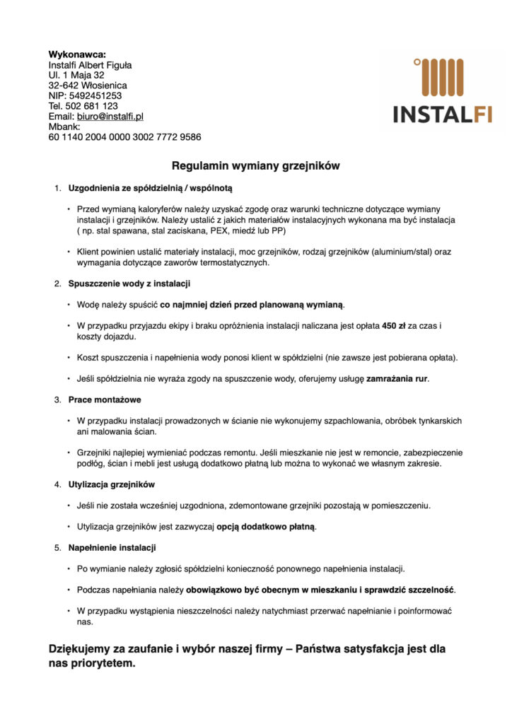 • wymiana kaloryferów w blokach mieszkalnych, domach i firmach